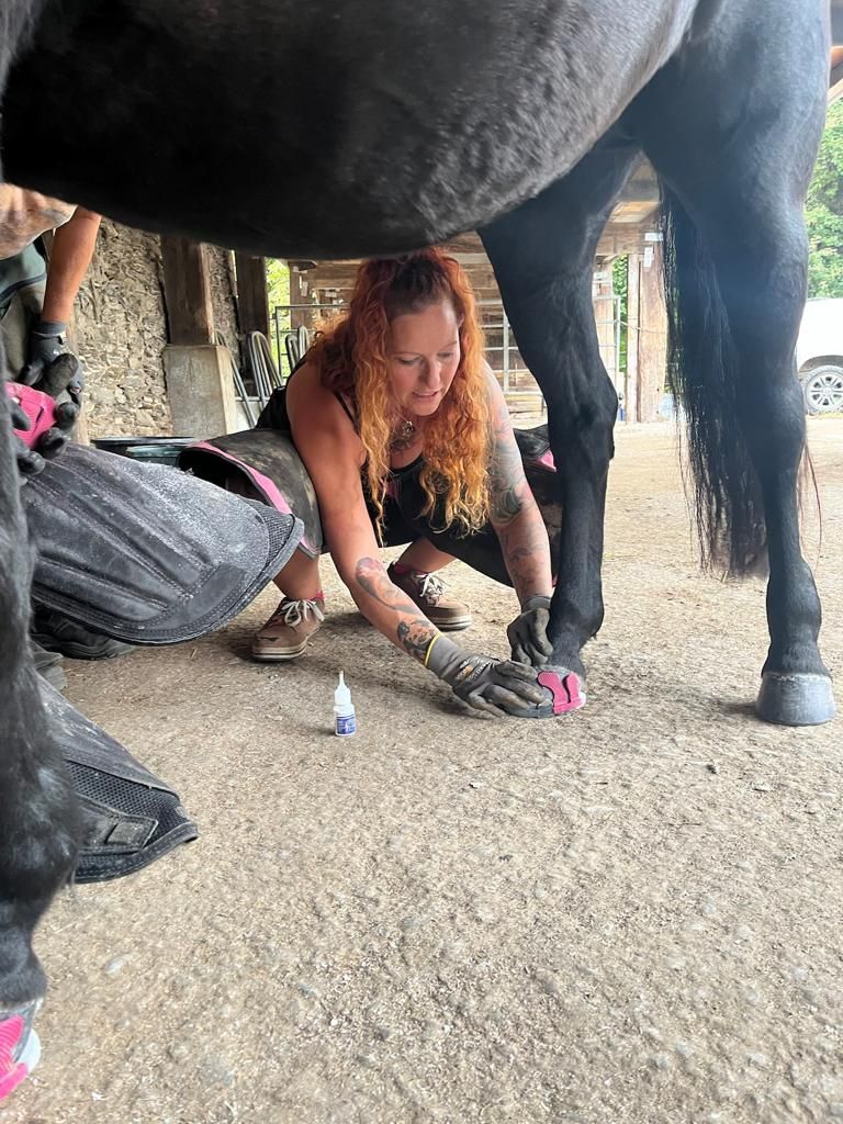 2021 nahm ich die Barhufbearbeitung dann nach und nach auch mit ein mein Programm. Hier arbeite ich absolut methodenoffen. Eingestiegen bin ich mit den Lehren von Martin Bösl, um dann mit erfahrenen Kollegen unterwegs zu sein und hier alles aufzusaugen, was wichtig ist. Hufe müssen nicht super schön aussehen, sie müssen genau für dieses Pferd passen (insbesondere ist hier die Berücksichtigung der Anatomie das A und O).